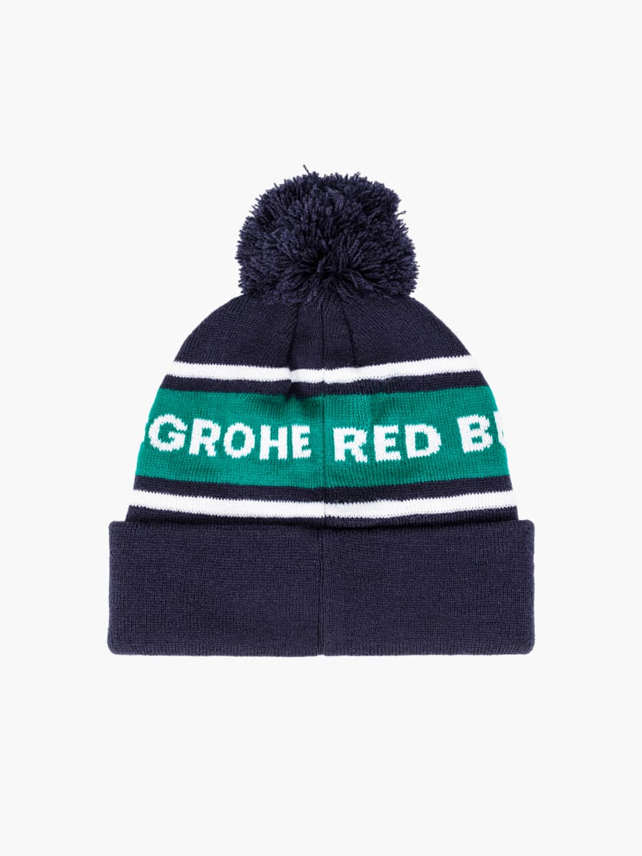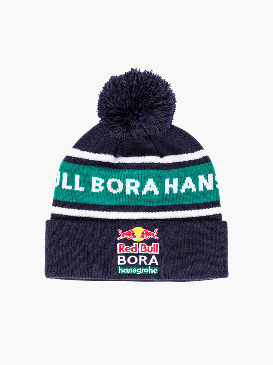 Stay warm on colder days in this cosy and stylish Red Bull - BORA - hansgrohe pom-pom beanie in team colours for youth. It features the Red Bull - BORA - hansgrohe logo on the front cuff, complemented by statement stripes on the crown incorporating team lettering.